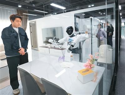 3月17日,在北京市石景山区具身智能触觉及多模态感知数训创新中心,工作人员在训练机器人。新华社记者 张晨霖摄